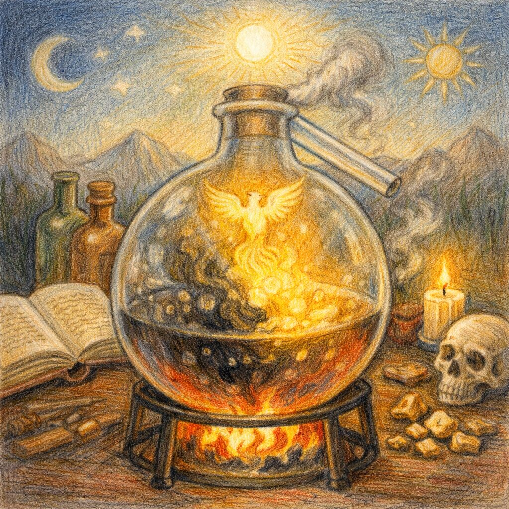 錬金術の象徴は、混乱や停滞を含みながらも人が変わっていくプロセスを、静かに示しているように思われます。